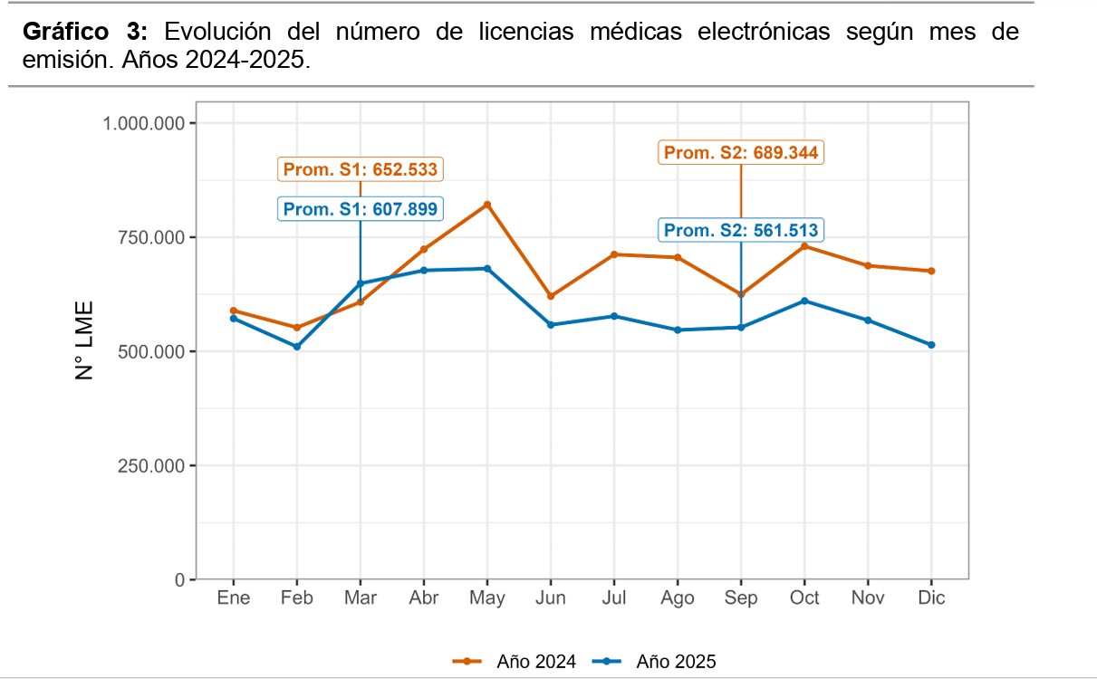 “Si bien teóricamente se espera un incremento en el uso de licencias médicas durante los meses de invierno; asociado habitualmente a patologías respiratorias, los datos de 2025 no siguen este patrón”, lee el documento de la Suseso.