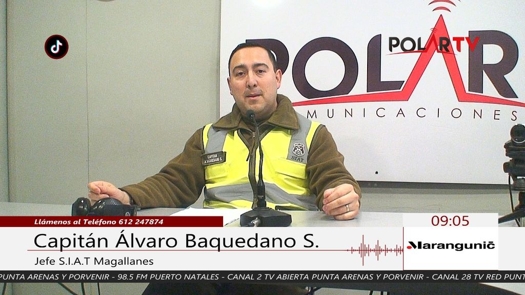 Esta mañana, en el programa “Buenos días región” de Polar Comunicaciones, el Capitán Álvaro Baquedano Silva, Jefe del S.I.A.T. de Magallanes, abordó la creciente problemática de los accidentes vehiculares en Punta Arenas. Durante la entrevista conducida por José Aguilante, el Capitán Baquedano Silva también destacó la preocupante estadística de 1.635 fallecidos en accidentes de tránsito durante el año 2023 a nivel nacional, enfatizando la necesidad de concientización y prevención.
