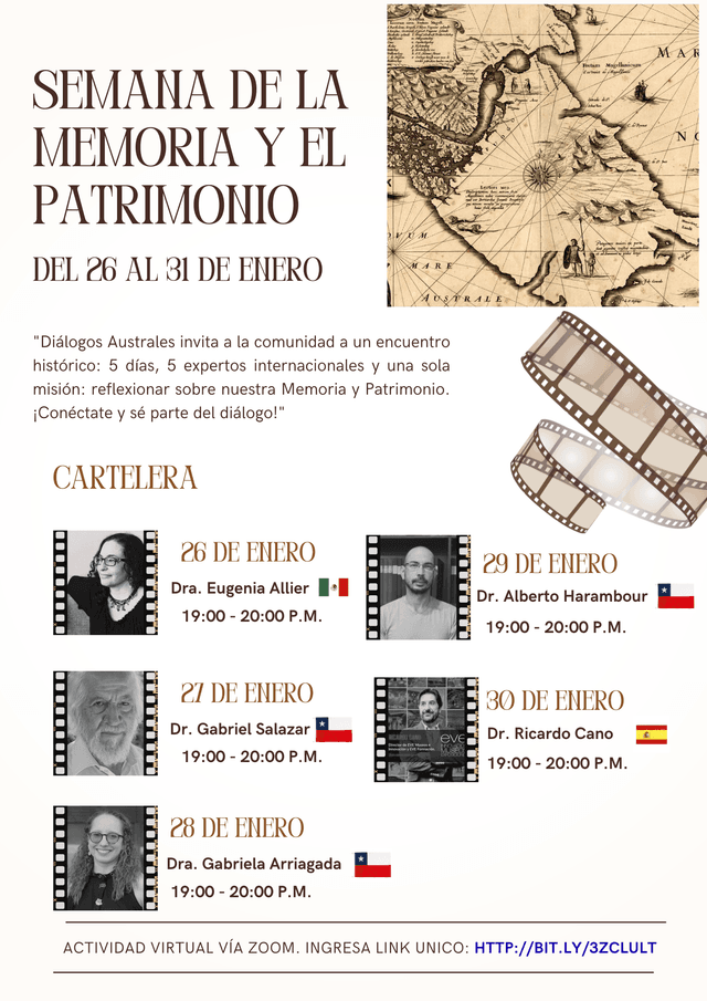Invitación a la comunidad. Las conferencias se realizan de forma telemática, esta semana, desde el lunes 26 al viernes 30 de enero, de 19 a 20 hrs (Chile), permitiendo que tanto magallánicos como interesados de otras latitudes puedan interactuar con los expositores.
