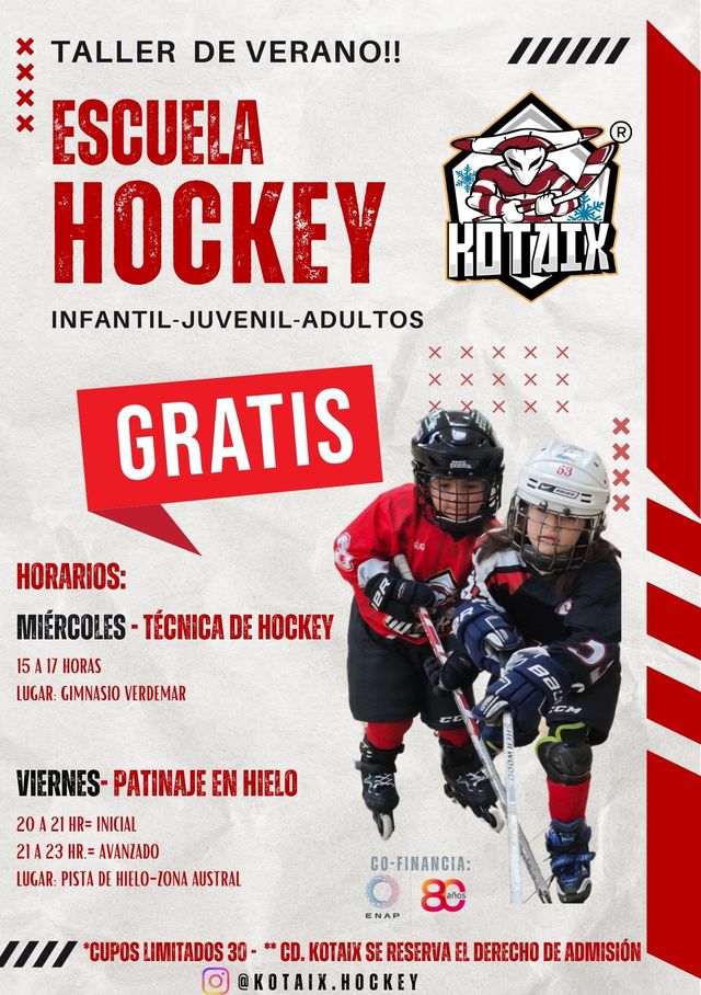 La iniciativa, dirigida a niños, jóvenes y adultos de ambos géneros, contempla clases gratuitas durante enero y busca acercar el patinaje y el hockey en hielo y en línea a la comunidad, con apoyo del fondo concursable ENAP-Impulsa 2025.