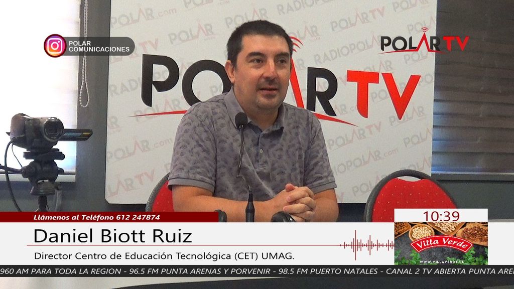 Esta mañana, en una entrevista en el programa “Buenos Días Región” de Polar Comunicaciones, Daniel Biott Ruiz, director del Centro de Educación Tecnológica (CET) de la Universidad de Magallanes (UMAG), conversó e informó a la ciudadanía sobre la continuidad en la apertura de matrículas para las carreras técnicas ofrecidas por la institución en Punta Arenas. Acompañado por José Aguilante, conductor del espacio, y Angela Molina del departamento de Comunicaciones de la UMAG, Biott Ruiz destacó la importancia de la educación técnica en el desarrollo regional y las oportunidades que estas carreras representan para los jóvenes y adultos que buscan formarse en áreas técnicas especializadas.