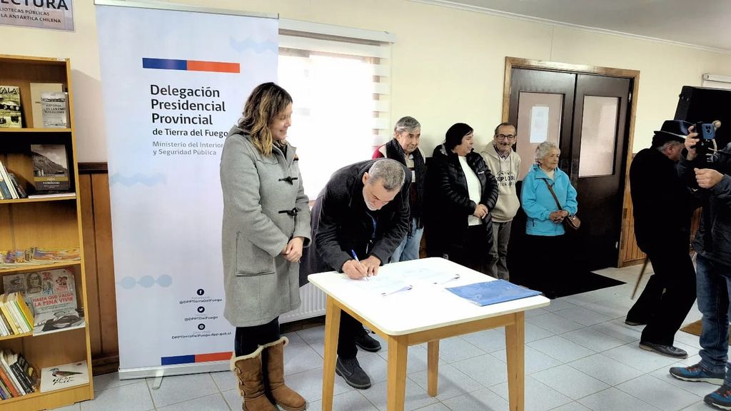 La entrega de esta modalidad de biblioteca, se realizó por medio del convenio entre la Dirección Regional del Servicio Nacional del Patrimonio Cultural de la Región de Magallanes y la Antártica Chilena (Serpat), representada por su director, Pablo Quercia Martinic y la Delegación Presidencial Provincial de Tierra del Fuego, representada por la delegada, Karim Fierro Brstilo, quienes firmaron el acuerdo ante la presencia de usuarias y usuarios del programa ejecutado por la delegación provincial.