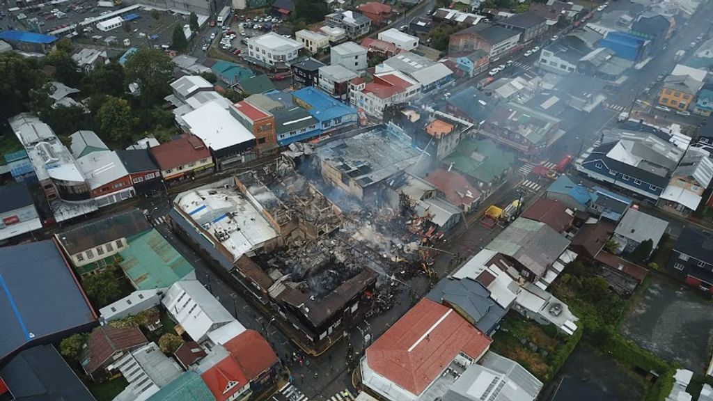 Un incendio estructural de grandes proporciones se registró durante la madrugada de este sábado en el centro de la ciudad de Ancud, en el archipiélago de Chiloé, destruyendo 60 locales comerciales pertenecientes Paseo Plaza Ancud, en la Región de Los Lagos.