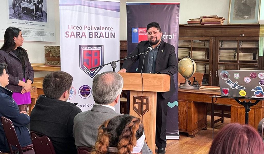 En ese contexto, se realizó un hito en el Liceo Sara Braun que contó con la presencia de la seremi de Ciencia, Tecnología, Conocimiento e Innovación, Verónica Vallejos Marchant; la seremi de la Mujer y Equidad de Género, Alejandra Ruiz Ovando; el seremi de Gobierno, Andro Mimica Guerrero; el seremi de Educación, Valentín Aguilera Gómez; y el director del establecimiento, Néstor Ríos Cardoza, junto a estudiantes de 4° año medio.
