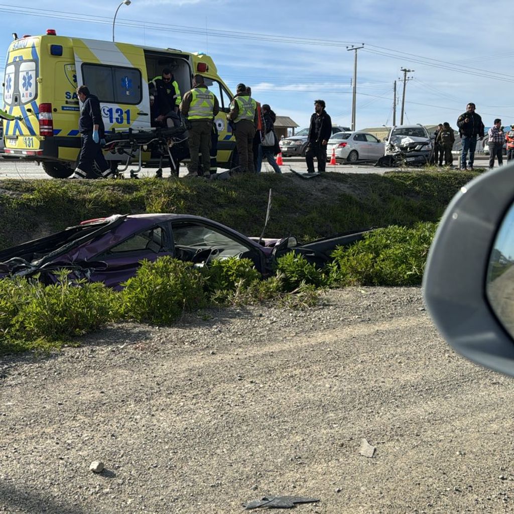 Un violento accidente de tránsito ocurrido la mañana de este martes en la Ruta 9 Norte, a la altura del kilómetro 10 en Punta Arenas, dejó a cuatro personas lesionadas. El siniestro involucró a dos vehículos, cuyas placas son JKCR-69 y RRGK-33, que colisionaron por causas que aún se investigan. Producto del impacto, uno de los automóviles terminó en una zanja al costado del camino.