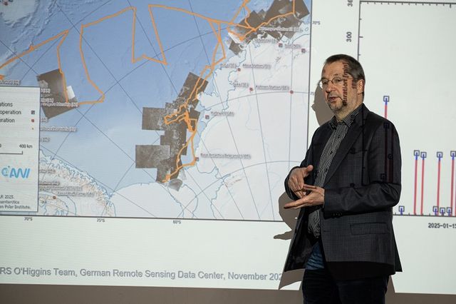 Schwinger presentó una visión general del Earth Observation Center del DLR y más tarde expuso sobre la plataforma Terrabyte, plataforma que integra big data, inteligencia artificial y computación avanzada para análisis ambientales. Robert Metzig complementó estas presentaciones con charlas sobre el servicio en tiempo real de la estación GARS en O'Higgins y los sistemas de recepción del segmento terrestre alemán. Desde la Universidad de Magallanes, el académico Sergio Radic aportó con una presentación sobre el uso de datos satelitales para aplicaciones agrícolas y ganaderas en la región de Magallanes y de la Antártica Chilena.