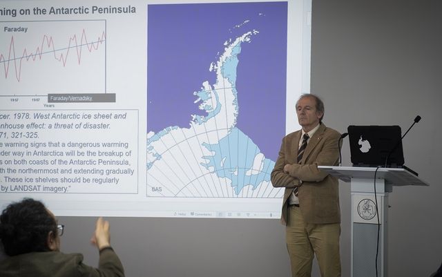 Posteriormente, Ricardo Jaña, jefe del Departamento Científico del INACH, hizo un repaso sobre la historia y relevancia de la estación GARS en los casi 35 años de cooperación entre Chile y Alemania, y el director Casassa finalizó la serie de presentaciones compartiendo resultados recientes acerca del rápido retroceso del glaciar Hektoria, ubicado en la costa este de la Antártica, el cual experimentó un derretimiento acelerado.