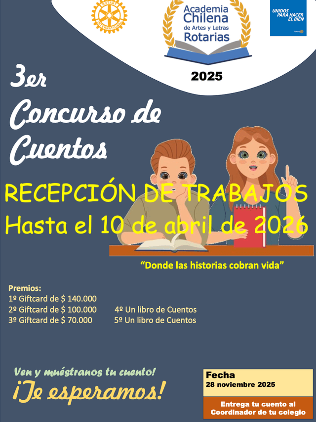 ​La iniciativa, impulsada por la Academia Chilena de Artes y Letras Rotarias, busca potenciar la creación literaria en jóvenes de Primero a Cuarto Medio, promoviendo valores como el compañerismo, la integridad y el servicio.