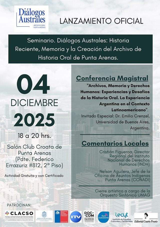 Con gran interés de la comunidad, se realizó el lanzamiento oficial del proyecto "Diálogos Australes: Archivo de Historia Oral Punta Arenas" con un seminario este jueves 4 de diciembre en el Club Croata.