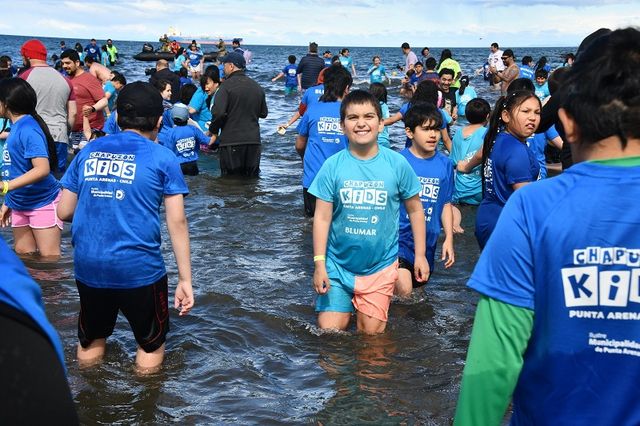 Con una amplia participación, la Municipalidad de Punta Arenas llevó a cabo este fin de semana el Chapuzón Kids 2026 en la playa ubicada al costado de las letras de la ciudad, a orillas del Estrecho de Magallanes.