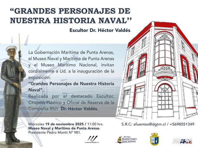 La exposición abrirá sus puertas este miércoles 19 de noviembre a las 11:00 horas en el Museo Naval y Marítimo de Punta Arenas, ubicado en Presidente Pedro Montt #981, en una actividad organizada por la Gobernación Marítima y el Museo Marítimo Nacional. Se trata de una oportunidad para que la comunidad magallánica pueda apreciar de cerca esta muestra que combina arte, historia y memoria en un solo recorrido.