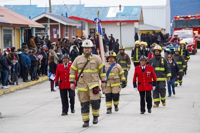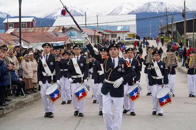 Las delegaciones desfilaron frente a las autoridades y residentes, reafirmando el compromiso institucional con el desarrollo y bienestar de la ciudad más austral del mundo.