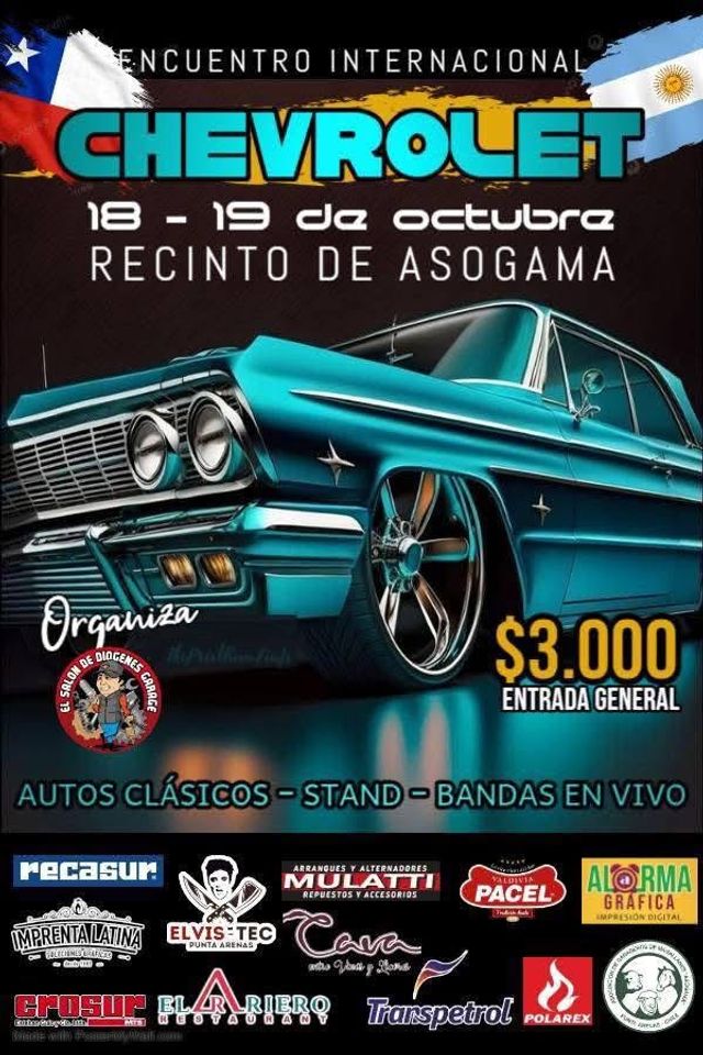 El rugido de los motores y el brillo del cromo se tomarán Punta Arenas el fin de semana del 18 y 19 de octubre con la realización del Primer Encuentro Internacional Chevrolet, que tendrá lugar en los salones de Asogama, en el recinto El Arriero.