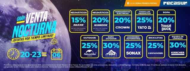 SÓLO POR TRES HORAS: RECASUR ZONA FRANCA PREPARA MASIVA VENTA NOCTURNA CON DESCUENTOS Y REGALOS ESTE SÁBADO 6 DE DICIEMBRE