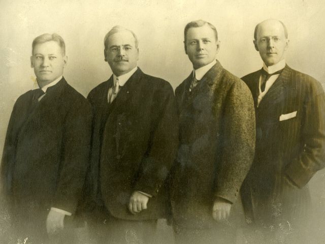 ​Los cuatro primeros rotarios (de izquierda a derecha) Gustavus Loehr, Silvester Schiele, Hiram Shorey y Paul P.