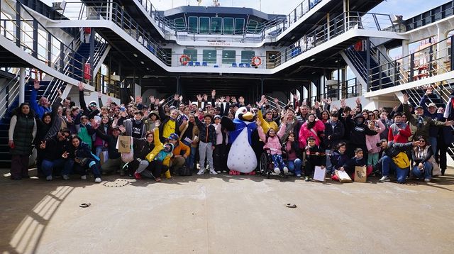 Con excelentes condiciones para la navegación, un grupo de 44 jóvenes estudiantes acompañados por su padres y profesores, disfrutaron de dos horas de navegación a bordo del ferry Pathagon de TABSA en el marco del cierre de la Semana de la Niñez 2025, actividad organizada por el Rotary Club de Punta Arenas.