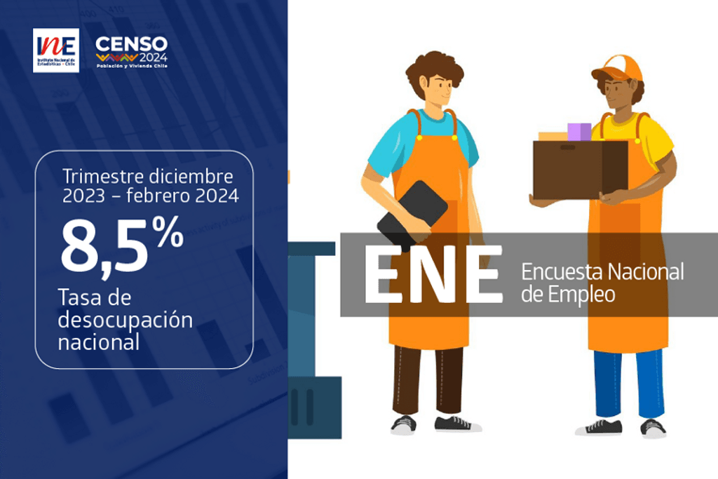 En 8,5% se ubicó la tasa de desocupación en Chile durante el trimestre diciembre de 2023 -febrero de 2024 (DEF 2024), de acuerdo con la información entregada por la Encuesta Nacional de Empleo (ENE), elaborada por el Instituto Nacional de Estadísticas de Chile (INE).