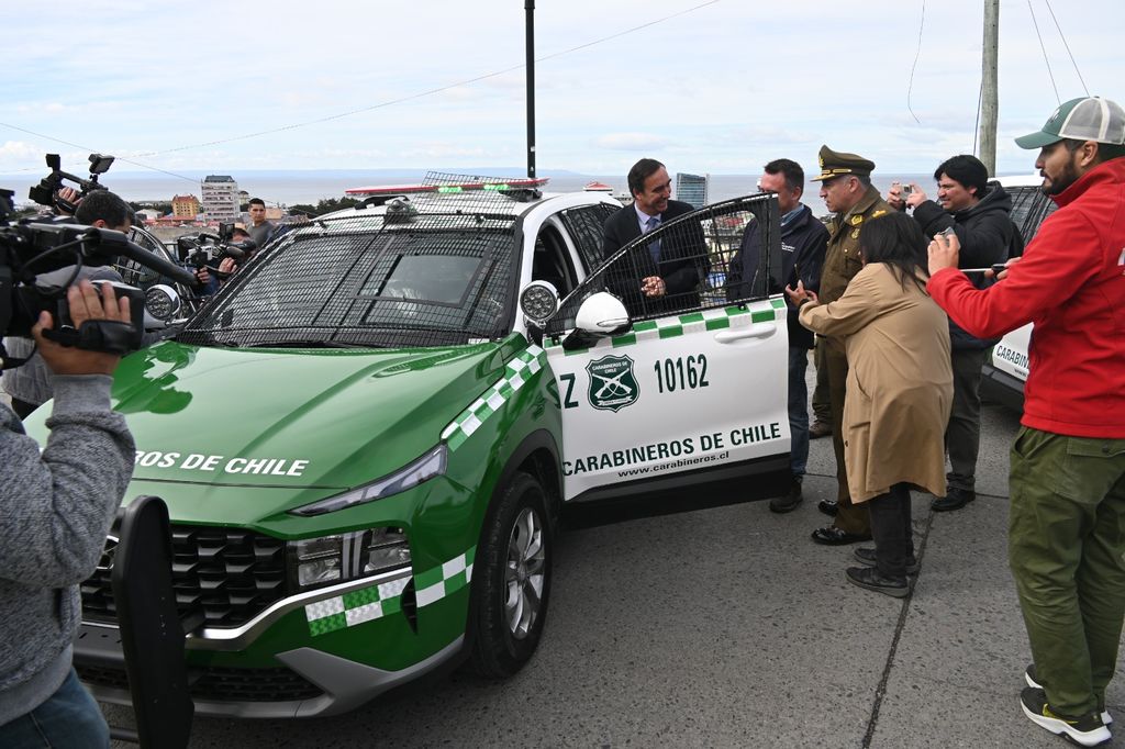 Durante la jornada, en las dependencias del mirador del Cerro la Cruz en la comuna de Punta Arenas se llevó a cabo la ceremonia de entrega de 14 vehículos policiales, que llegaron a la región de Magallanes para complementar los servicios realizados diariamente en la población, demostrando el compromiso de Carabineros de Chile en aumentar la sensación de seguridad de la ciudadanía. Este simbólico acto contó con la presencia del Gobernador de Magallanes, Jorge Flies Añon, el Delegado Presidencial José Ruiz Pivcevic, la Coordinadora de Seguridad Pública Carla Barrientos, el Alcalde Claudio Radonich, entre otras autoridades locales y vecinales de la región.